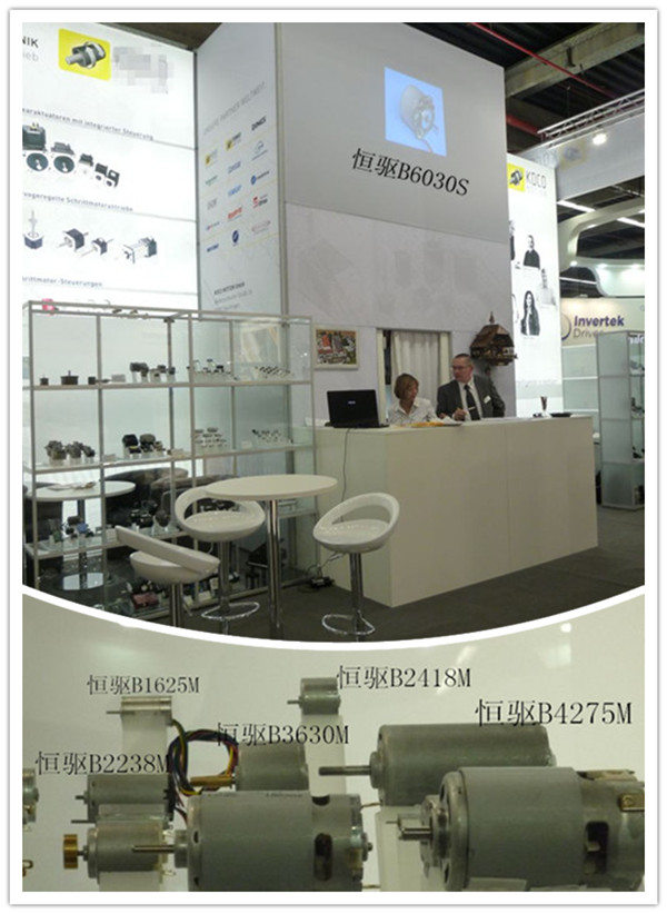 恒驅(qū)電機德國代理商在展會上展示了B6030S、B4275M、B2418M等恒驅(qū)直流無刷電機,并發(fā)來參展圖片。