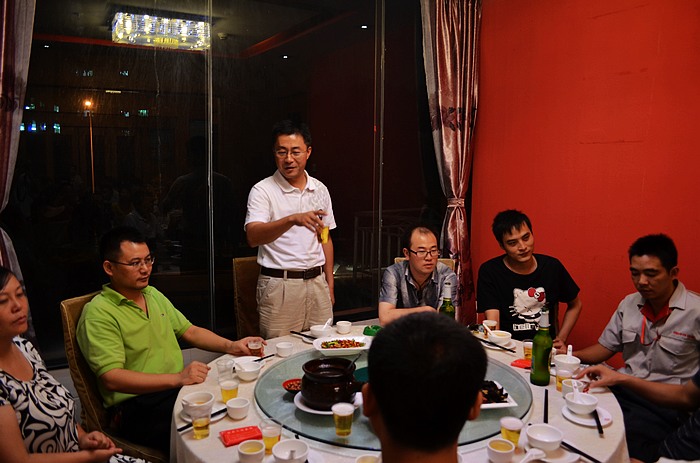 2012年9月27日晚,湖南大碗菜里一片歡欣喜慶。晚餐開(kāi)始前,公司總經(jīng)理致辭并舉杯同飲,把氣氛推向高潮。