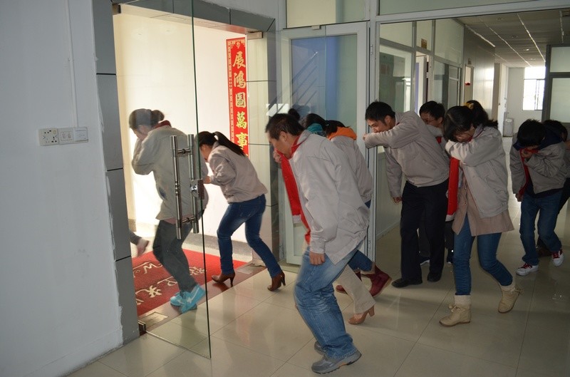 隨著火災警報的響起,全體員工有序地進行疏散,用衣角捂鼻彎腰迅速逃離火災現(xiàn)場,到達指定地點。安全工作小組負責疏散逃生演練的組織和指揮工作。