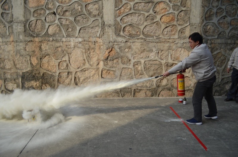 為達到實戰(zhàn)演練效果,還進行了現(xiàn)場演習示范消防器械的操作,包括滅火器的操作使用以及消防栓的使用。