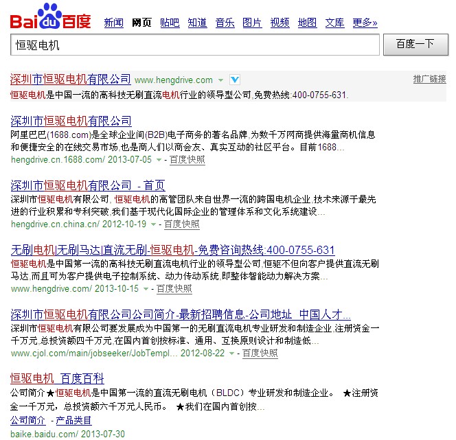 從7月份到10月份,整整3個月,恒驅(qū)電機(jī)的官方網(wǎng)站終于又重新出現(xiàn)在了百度首頁,目前是排名在第三位。