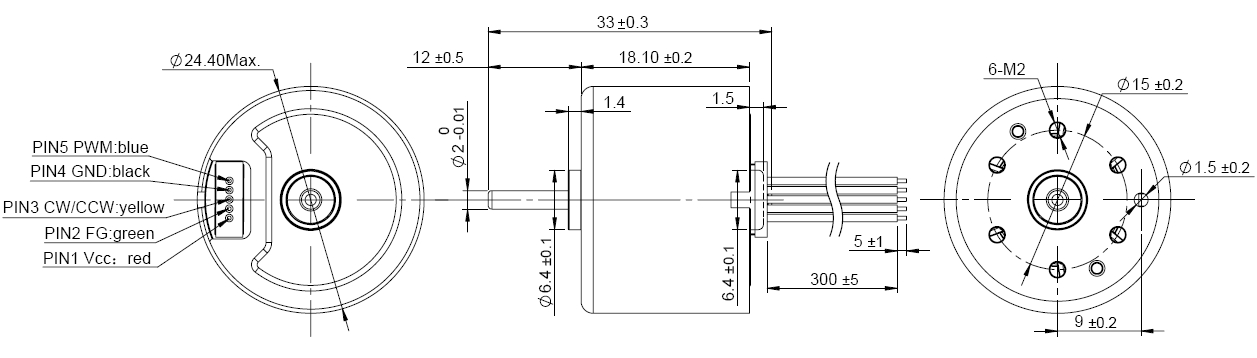 Outline Drawing 外形圖: Usable machine screw length 1.5mm max from motor mounting surface Unit: Millimeter