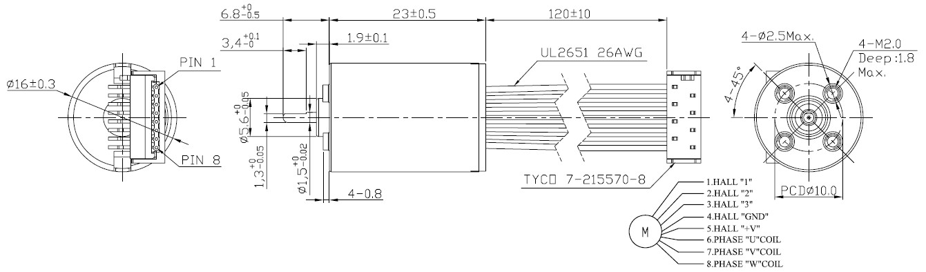 注意:上述規(guī)格僅針對特定客戶,電壓、扭矩、轉速、電流、功率、輸出軸的特征和尺寸等都可以按照客戶的特殊要求進行調整。