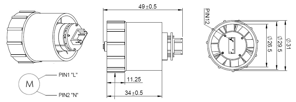 Outline Drawing 外形圖: (The housing is made of silica gel. 電機(jī)外殼為硅膠材質(zhì)。)