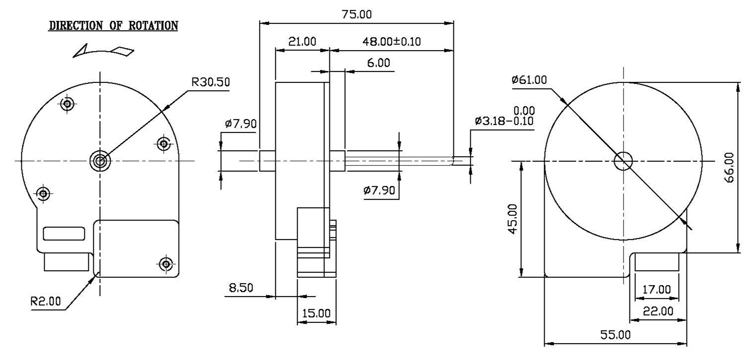 Notice: Data in this typical specification sheet are for other certain customer. Voltage, rated torque, speed, current, power and shaft extension feature & dimension can be changed to meet customer specific requirement. 注意:上述規(guī)格僅針對(duì)特定客戶,電壓、扭矩、轉(zhuǎn)速、電流、功率、輸出軸的特征和尺寸等都可以按照客戶的特殊要求進(jìn)行調(diào)整。 |