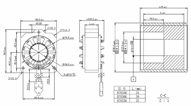Notice: Data in this typical specification sheet are for other certain customer. Voltage, rated torque, speed, current, power and shaft extension feature & dimension can be changed to meet customer specific requirement. 注意:上述規(guī)格僅針對特定客戶,電壓、扭矩、轉(zhuǎn)速、電流、功率、輸出軸的特征和尺寸等都可以按照客戶的特殊要求進行調(diào)整。 |