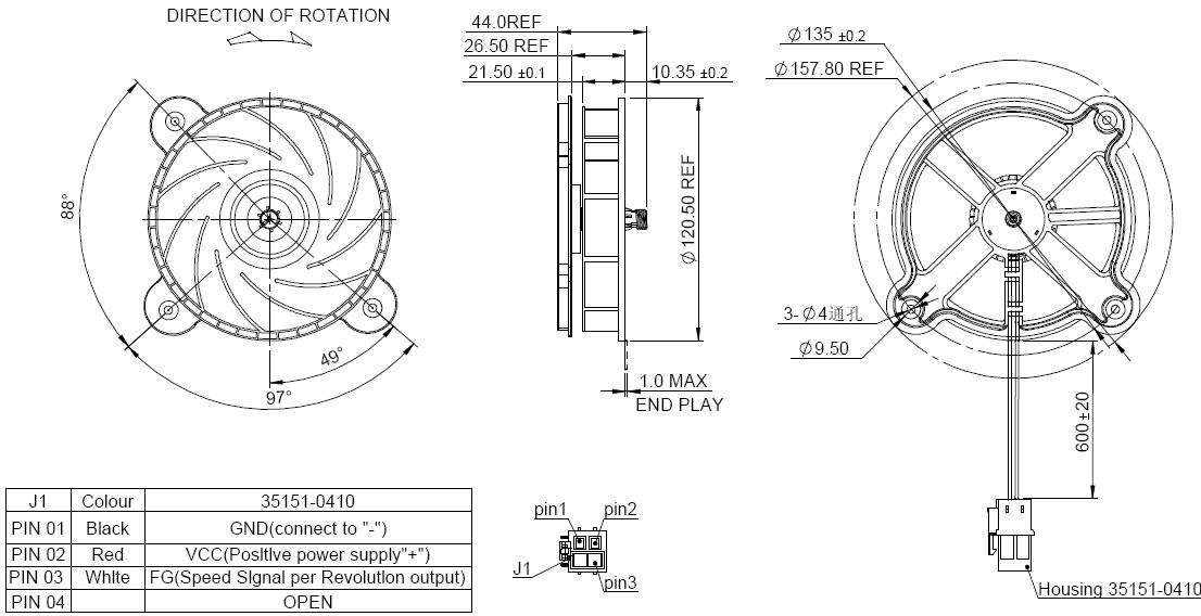 Characteristic: CW or CCW, Signal function available, Locked rotor protection, Low noise, Low EMI, Long life 70000 hours min.